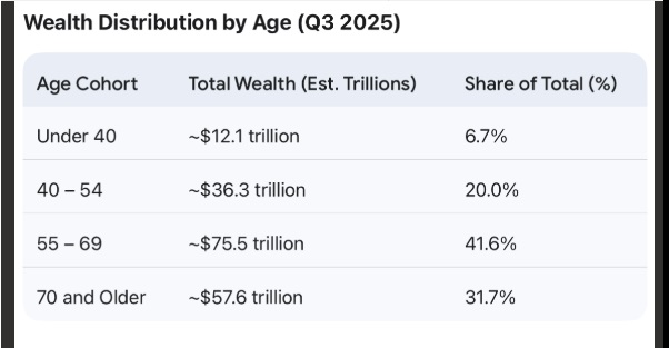 A private research and consulting firm, Cerulli Associates, believes a staggering sum — $124 trillion — will change hands by 2048.   Much of that sum, $52 trillion, they expect, will “transfer” to “heirs” — meaning children.  Of course, these are mostly children of rich people, but that’s a lot of wealth transfer.   Gen X is the most immediate beneficiary over the next decade; Millennials are expected to be the largest beneficiaries over the longer term.   This group is between 30 and 45 in 2026.