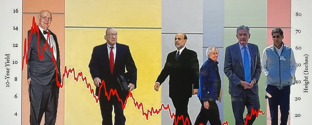 At just 5’3″, Janet Yellen was the shortest. The image shows us an interesting correlation: Interest rates were the highest during the term of the tallest FED chairman … and they were the lowest during the shortest person’s term.