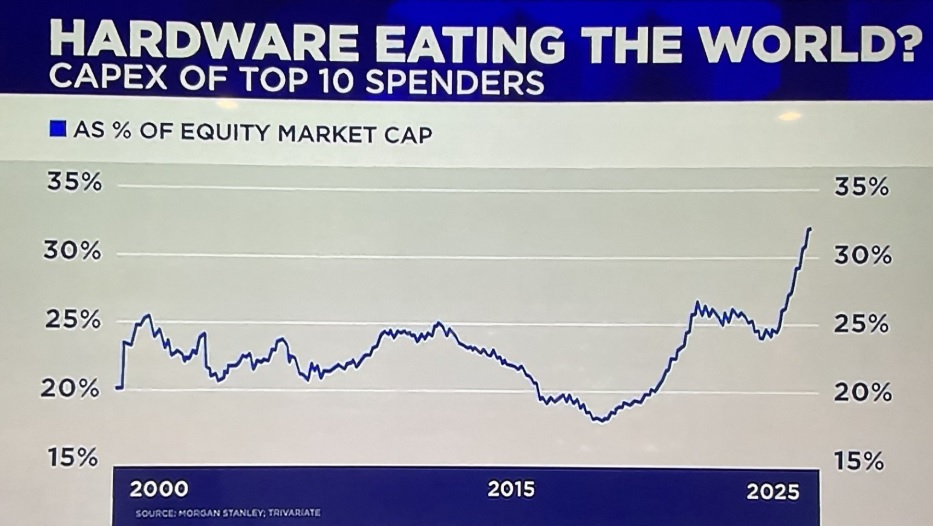 Since 2000, capital spending (CapEx) by the top 10 global companies hovered between 20% and 25% of their market capitalization.    This level of spending was consistent for the 25 years leading up to 2025.