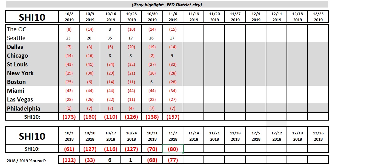 With the exception of Boston, most of the cities in our SHI10 index show little change over last week. Once again, activity here appears supportive of an economic engine in need of a tune up.