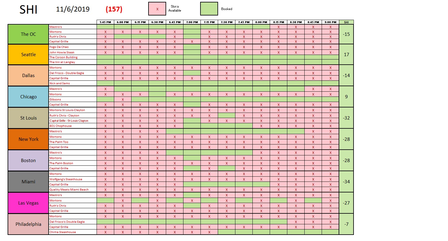 So it’s a mixed bag. Our SHI10 numbers seem to agree. Reservation demand at our pricey eateries is fairly flat too: