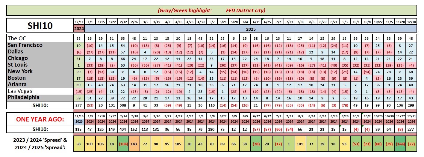 After spending much of the year in the ‘red‘ the SF market seems to be sizzling. As you probably know, SF is the heart and soul of the exploding AI movement. After spending a handful of years in the dog house, the city’s economic fortunes seem to be smiling. And the SHI reservation demand reflects the city’s budding optimism.