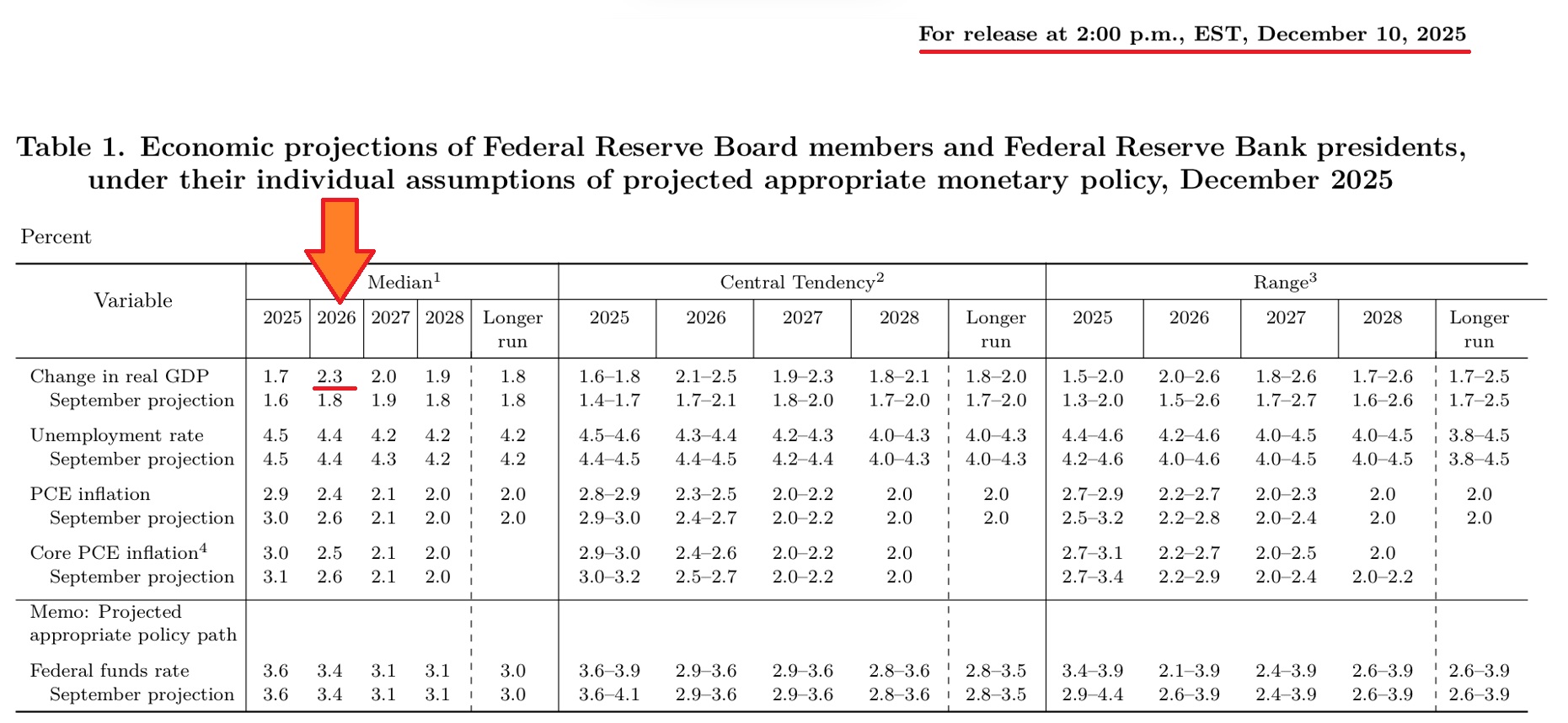 And yet, this cut came as the FED itself INCREASED its internal projection for 2026 GDP. See below: