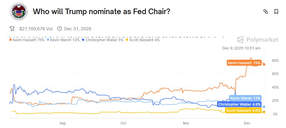 Kevin Hassett is clearly the front-runner. Right or wrong, Polymarket is certainly making economic forecasting more interesting – and, potentially, profitable!
