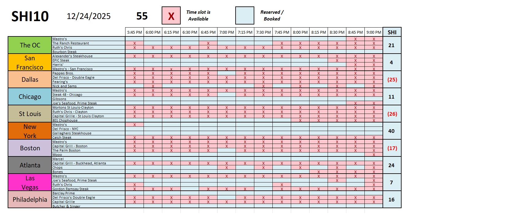 Let’s check in with our SHI40 steakhouses.