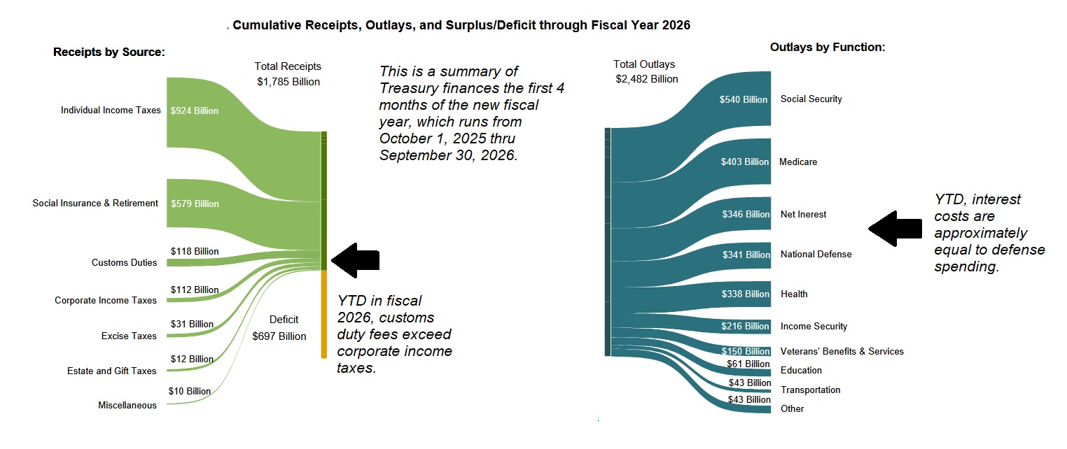 I’ll finish with this:  Every month, the US Treasury publishes the “Monthly Treasury Statement,” a 30- or 40-page document that both summarizes the details the financial goings-on over at the Treasury Department.    The most recent report was published this morning, covering exactly 1/3 of the current fiscal year.   In other words, this data covers a four month period, beginning on October 1, 2025 and ending on January 31, 2026.