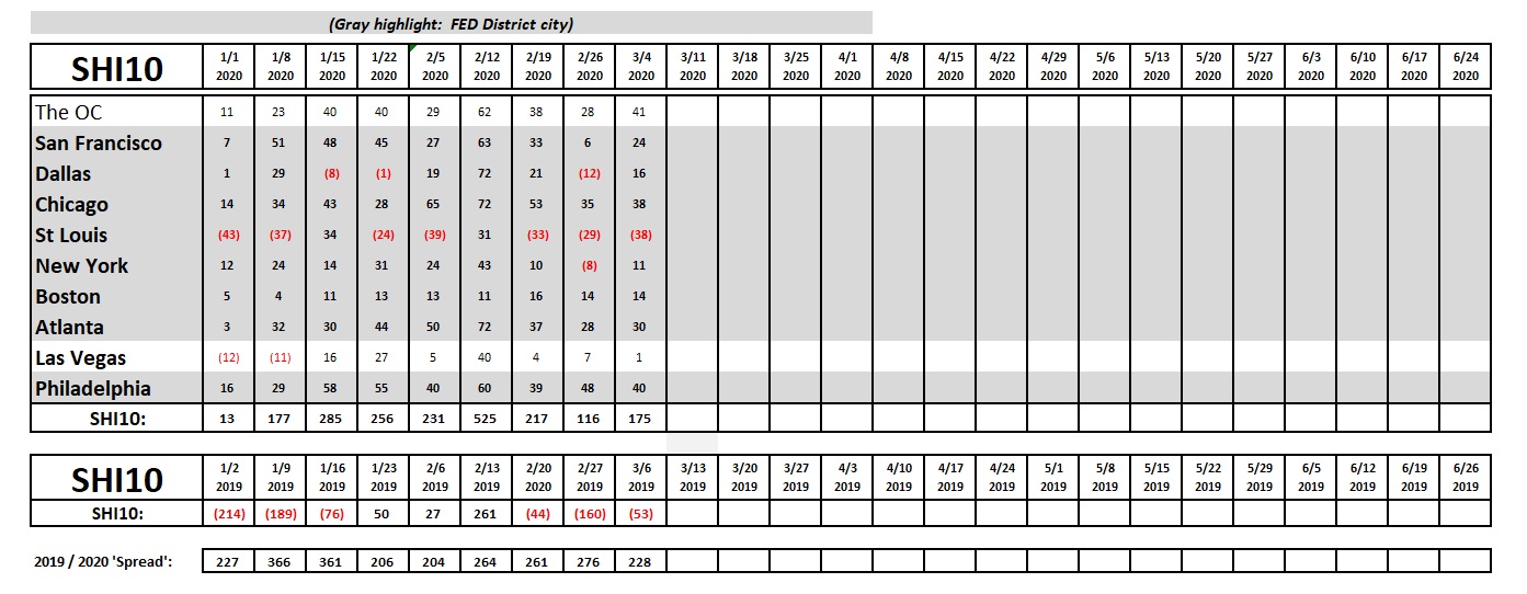 If the SHI10 index moves appreciably -– either showing massive improvement or significant declines –- indicating growing economic strength or a potential recession, we’ll discuss possible actions at that time.