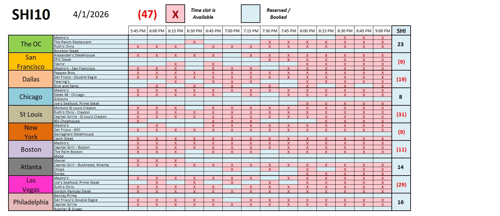 As you can see above and below, reservation demand in our pricey steakhouses is as lukewarm as the Japanese housing market. Well, maybe not quite that bad … but this week’s numbers are pretty weak. Perhaps demand is muted in light of overall economic anxiety, probably exacerbated by the Iran conflict? Quite likely.