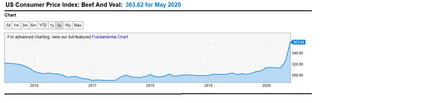 The beef index is tracked by the Bureau of Labor Statistics, within the CPI itself. And like the US stock markets, beef is up!