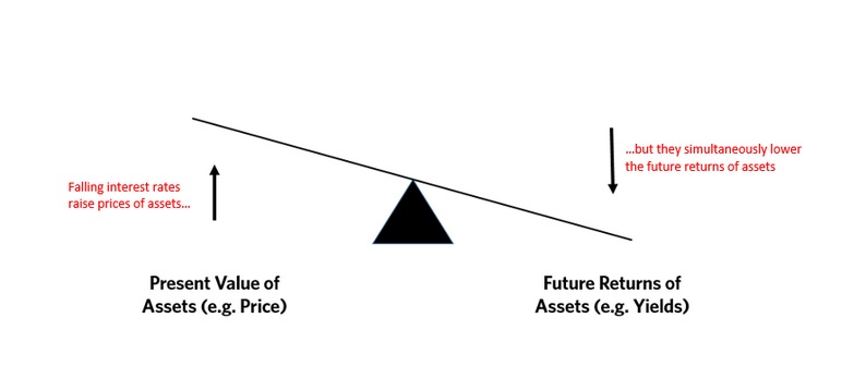 Fascinating. Today, the FED picked their battle. By this move, they are saying below-trend inflation is MORE important — a more significant issue — than the significant growth in asset values/capital. Make no mistake, as interest rates fall, asset values tend to rise. In his ‘Paradigm Shift’ piece, Ray Dalio had a great graphic that summarizes this relationship: