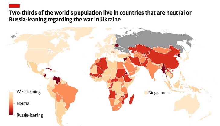 As we fast forward to today, we now know that 2/3 of the worlds population either (1) doesn’t care about the Russian invasion (they are neutral), or (2) they don’t object to the invasion or even side with Russia on it. Only 1/3 of the world’s population condemns Russia or Putin.