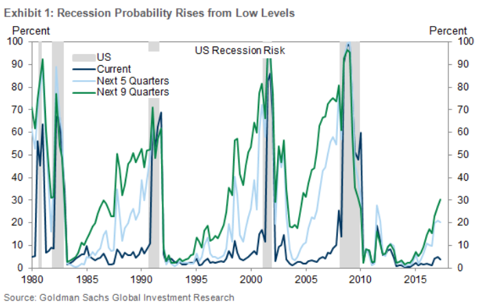 Goldman puts the odds of a recession within the next few years (9 quarters) at only 31%. Further, they feel there’s a better than 2/3 chance our current economic recovery will become the longest US recovery ever! Another number 1!