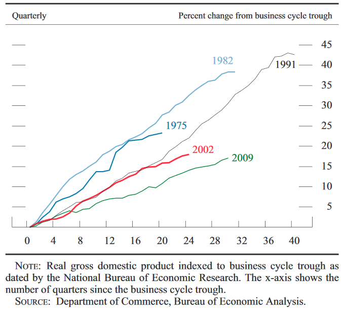 On page 6, they talk about the ongoing “…Recover from the Great Recession….” and how the pace of the current economic expansion is the weakest since WW2.